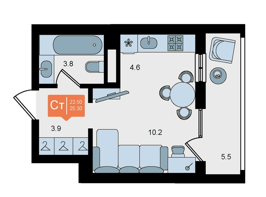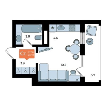 Площадь от 25.4 м2