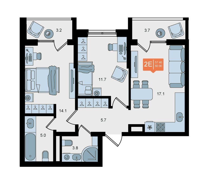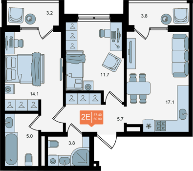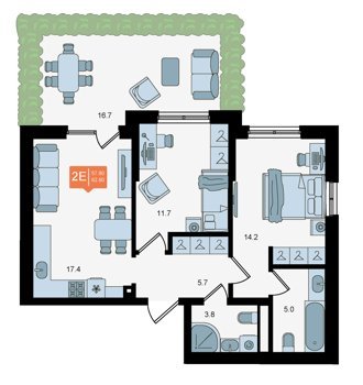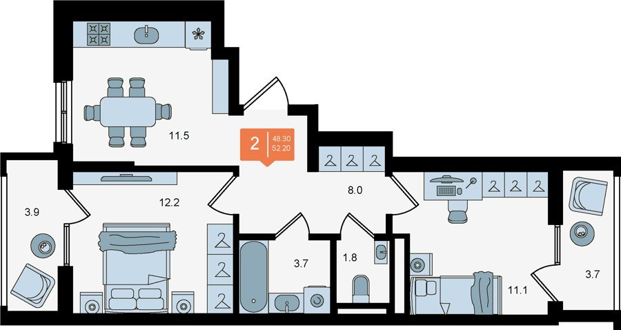Площадь от 52 м2